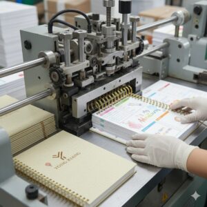 We manage every stage in-house—from raw material inspection to printing, finishing, and packaging—ensuring that even large orders of 500+ units are uniform and meet strict B2B quality standards. Whether producing hardcover editions, foil-stamped luxury journals, or custom spiral-bound planners, our processes guarantee precision and professional-grade results.