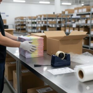 A9: Each book is individually packed in poly bags or shrink wrap, then placed in export-grade cartons for secure shipping. Optional dividers or inserts are available for multi-title orders.